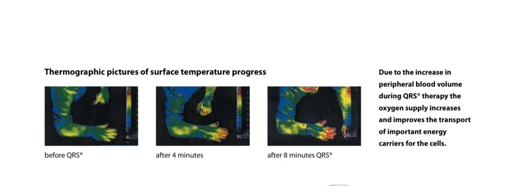 QRS® increases cell metabolism and therefore improves the cell membrane potential. This improves the cell’s ability to function. The improved electric cell voltage provides a higher “osmotic” pull for the absorption of minerals and nutrients into the cell. At the same time the circulation of blood in tissues is increased providing thirsty cells with more oxygen. A higher blood- and oxygen-penetration provides reduction of fermentation processes and acid excesses, relaxation of tense hardened muscles, boosting metabolism and strengthening the immune system.